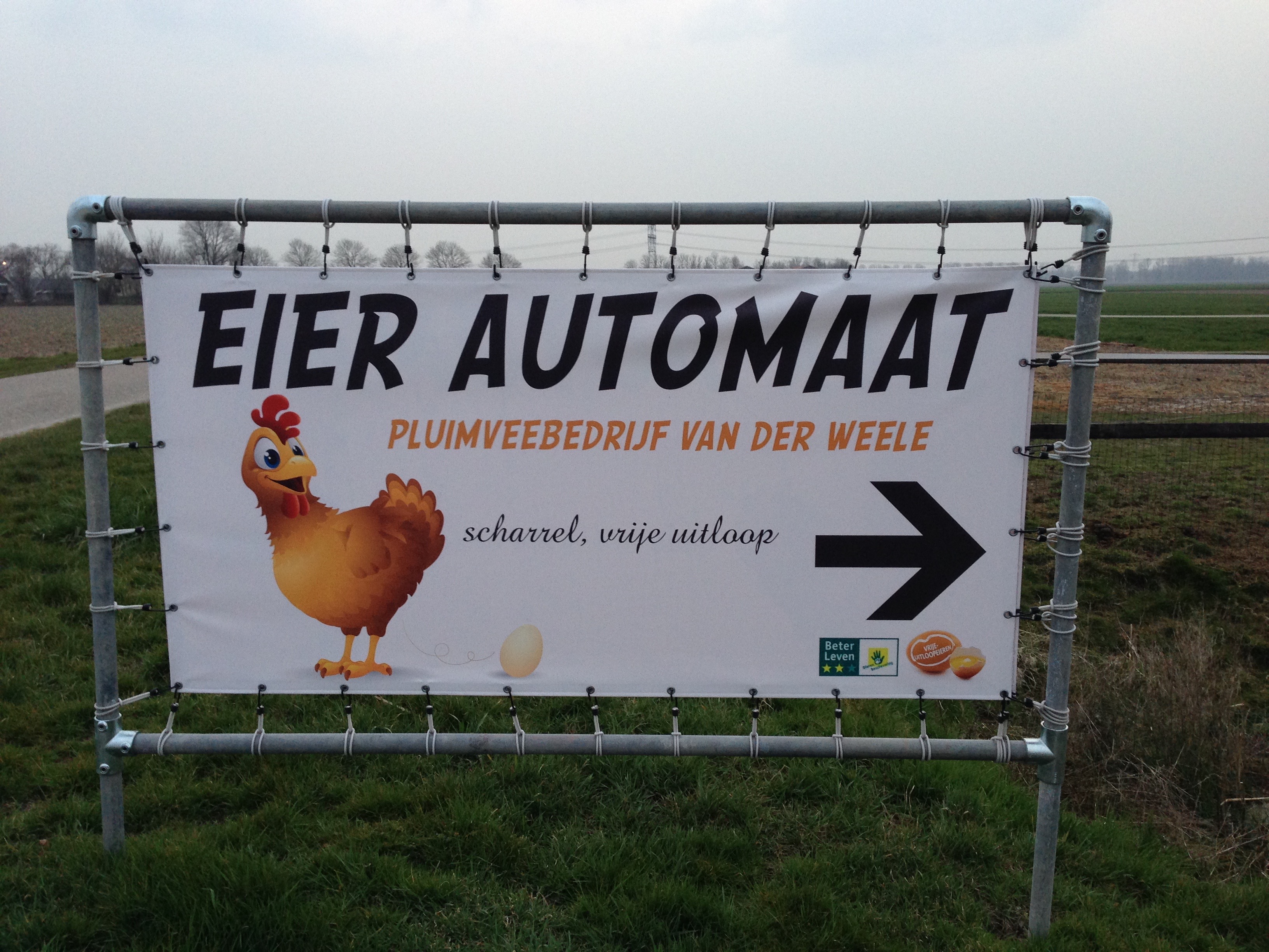 Wij zijn de familie van der Weele. We hebben een legpluimveebedrijf met 22.000 scharrel, 47.000 vrije uitloop en 29.000 biologische kippen. De eieren van deze kippen verkopen we hoofdzakelijke aan de groothandel. Een gedeelte van onze eieren gaan rechtstreeks naar de consument. Deze eieren zijn te koop in onze eierautomaat. Deze is 24 uur per dag bereikbaar en heeft een ruim assortiment. U kunt betalen met €5,- € 10,- en € 20,-. Uiteraard wisselt de automaat. Ook kun u contactloos betalen. Voor grotere bestelling kunt u contact op nemen met +31 6 21 69 60 79.